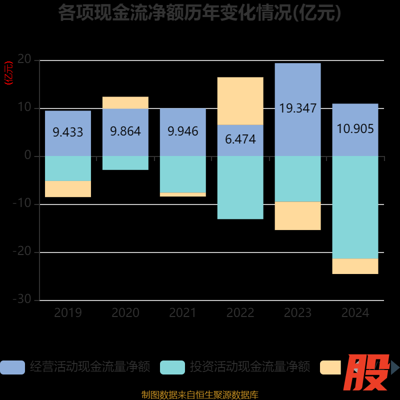 截至2024年,公司经营活动现金流净额为10.91亿元,同比下降43.63%;筹资活动现金流净额-3.21亿元,同比增加2.7亿元;投资活动现金流净额-21.37亿元,上年同期为-9.51亿元。