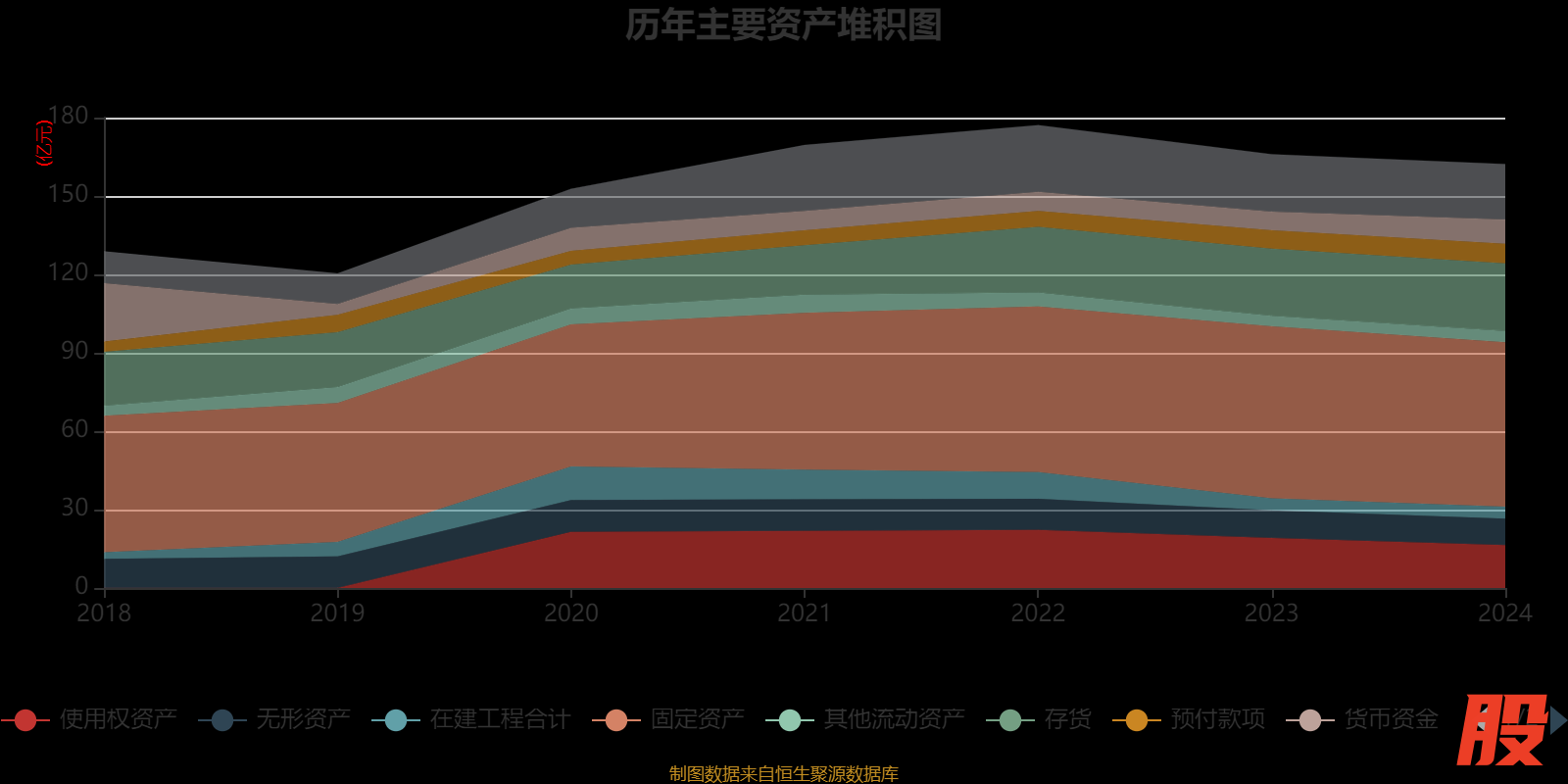 资产重大变化方面,截至2024年末,公司使用权资产较上年末减少14.35%,占公司总资产比重下降1.43个百分点;货币资金较上年末增加29.44%,占公司总资产比重上升1.39个百分点;固定资产较上年末减少4.32%,占公司总资产比重下降0.83个百分点;存货较上年末增加0.83%,占公司总资产比重上升0.49个百分点。