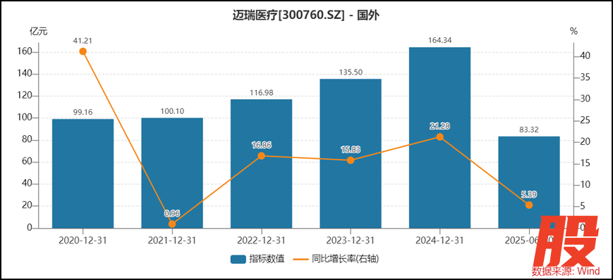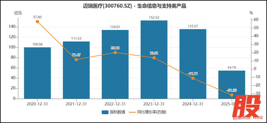 生命信息与支持业务:作为公司传统的业绩支柱,2025年上半年收入54.79亿元,同比骤降31.59%。该业务领域的监护仪、呼吸机、除颤仪、麻醉机等核心产品受国内医疗基建项目延期拖累。值得注意的是,该业务2017年到2023年复合增长率近20%,此次大幅下滑标志着公司核心增长动力的失速。