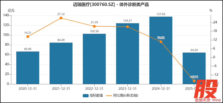 体外诊断(IVD)业务:在2024年刚成为公司第一大业务,2025年上半年收入64.24亿元,同比下降16.11%。主要原因是体外诊断试剂的检测量和价格均出现了一定幅度的下滑,导致体外诊断业务遭遇阶段性挑战。尤其是在2025年第三季度,体外诊断产线整体实现收入36.34亿元,同比下降2.81%,而国内市场成为主要拖累。
