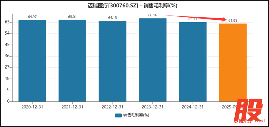 迈瑞医疗的超低价中标并非偶然,而是其精心设计的“设备+试剂”绑定销售模式的体现。在这种模式下,企业以极低价格甚至免费提供医疗设备,然后通过后续的试剂、耗材销售和服务来获取持续收入。这种模式虽然在一定程度上能够保证客户的长期粘性,但也可能导致市场秩序的混乱。从实际效果来看,低价竞标策略已经对迈瑞医疗的盈利能力产生了实质性侵蚀。2025年三季度,公司整体毛利率降至61.95%,较往年明显下滑。