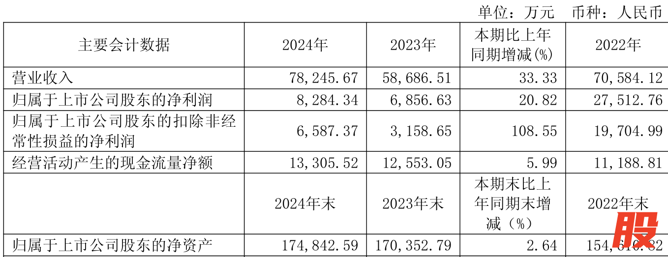资产重大变化方面,截至2024年末,公司固定资产较上年末增加95.39%,占公司总资产比重上升11.54个百分点;一年内到期的非流动资产较上年末减少43.24%,占公司总资产比重下降6.69个百分点;在建工程合计较上年末减少94.58%,占公司总资产比重下降5.29个百分点;货币资金较上年末减少19.95%,占公司总资产比重下降4.2个百分点。