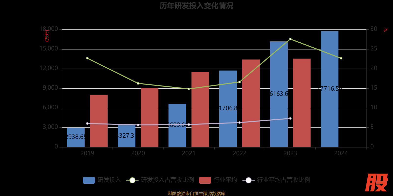 2024年全年,公司研发投入金额为1.77亿元航心配资,同比增长9.61%;研发投入占营业收入比例为22.64%,相比上年同期下降4.9个百分点。